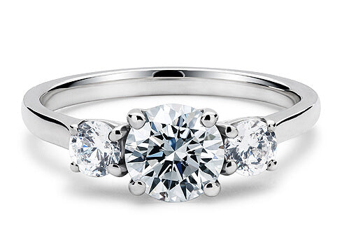 A beautiful trilogy ring that oozes in both class and sophistication. The centre diamond is accompanied by two round cut diamonds. Set in tapered ring band with open daylight shoulders allows this trilogy ring to sparkle to its full potential.