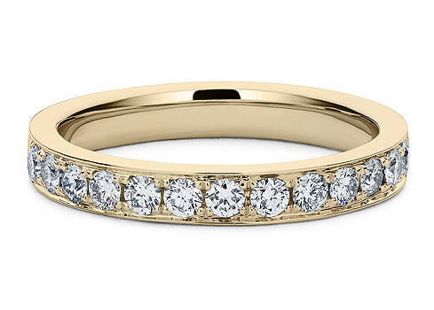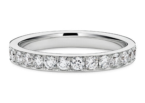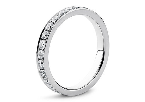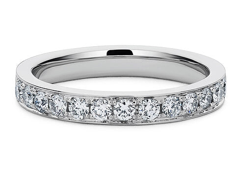 A beautiful diamond eternity ring. A flat court band with grain set round brilliant cut diamonds.