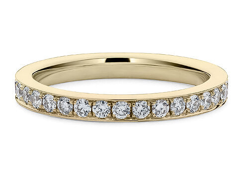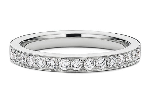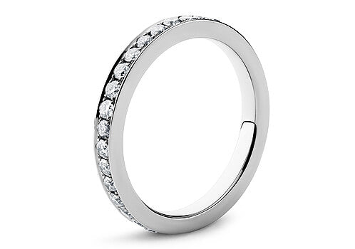 A beautiful diamond eternity ring. A flat court band with grain set round brilliant cut diamonds.