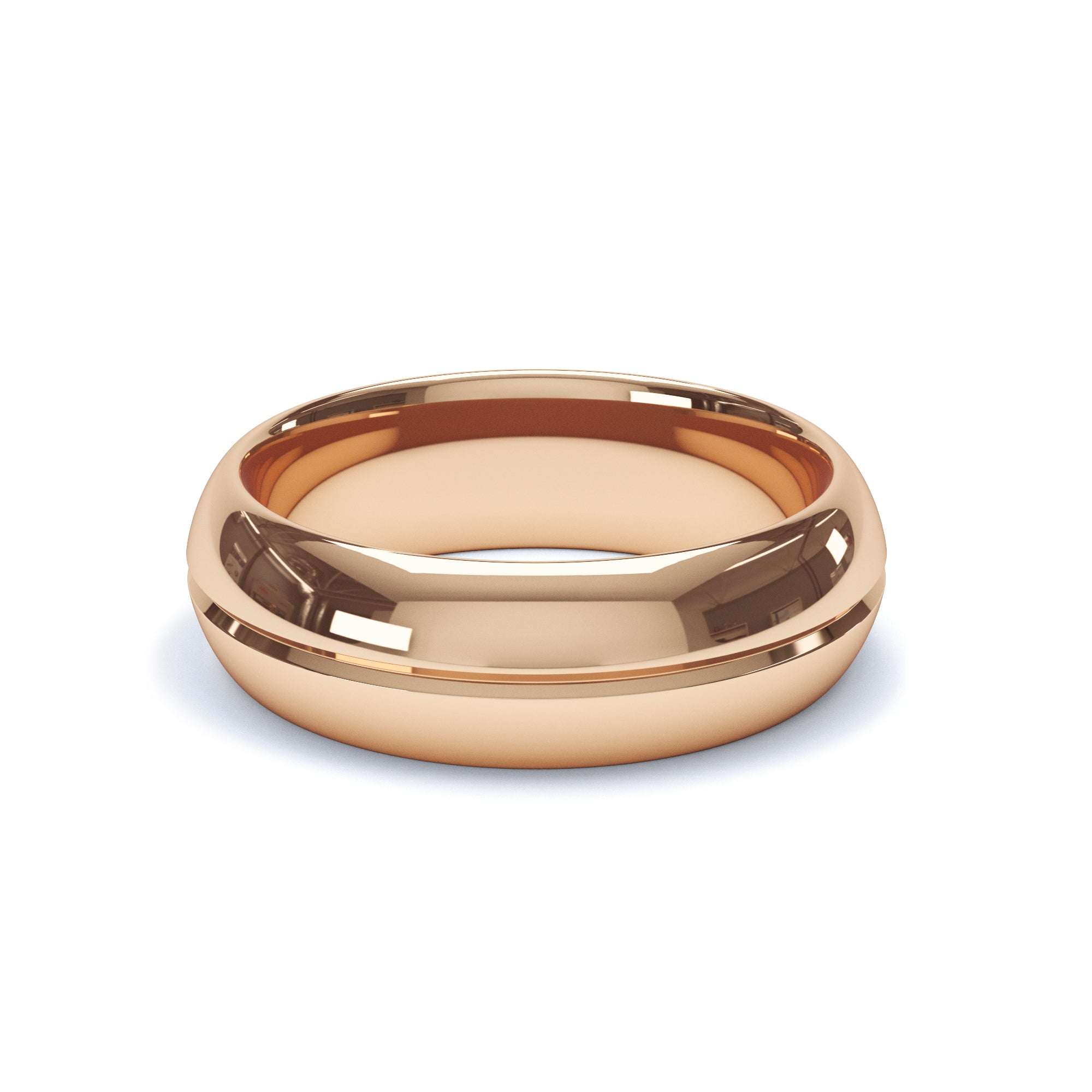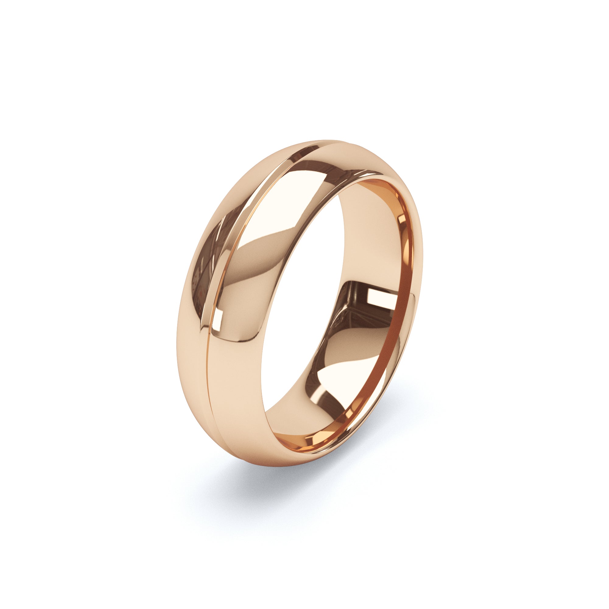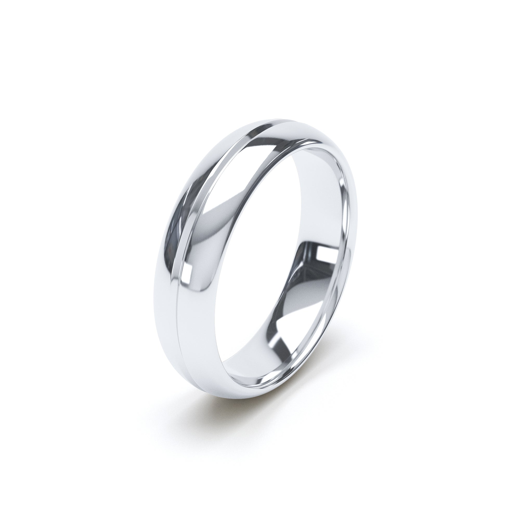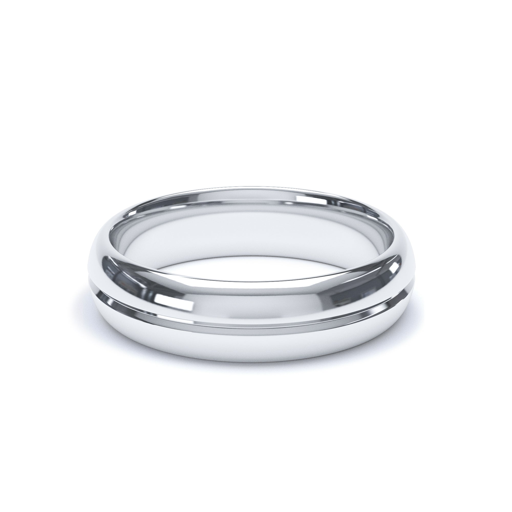A luxurious Groove wedding ring. A take on our modern cushion court wedding band that is courted on both sides but with centre 'V' groove.