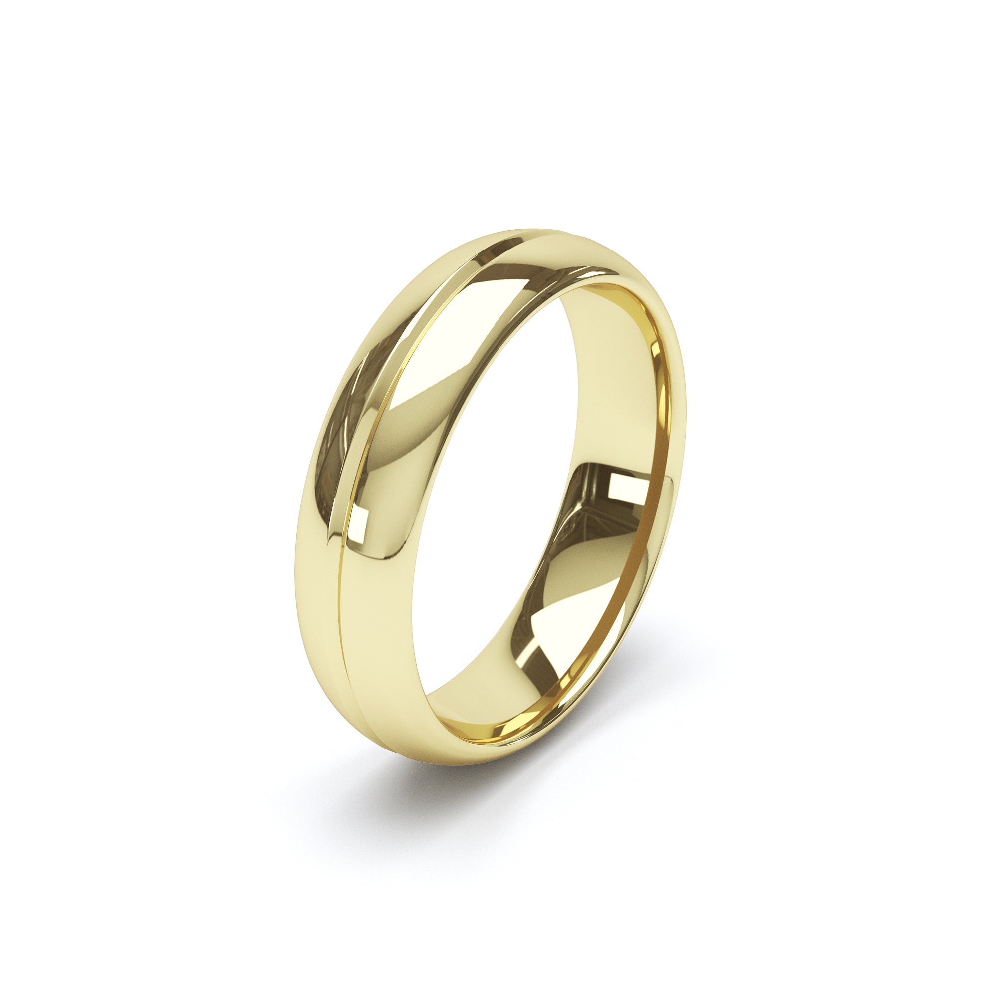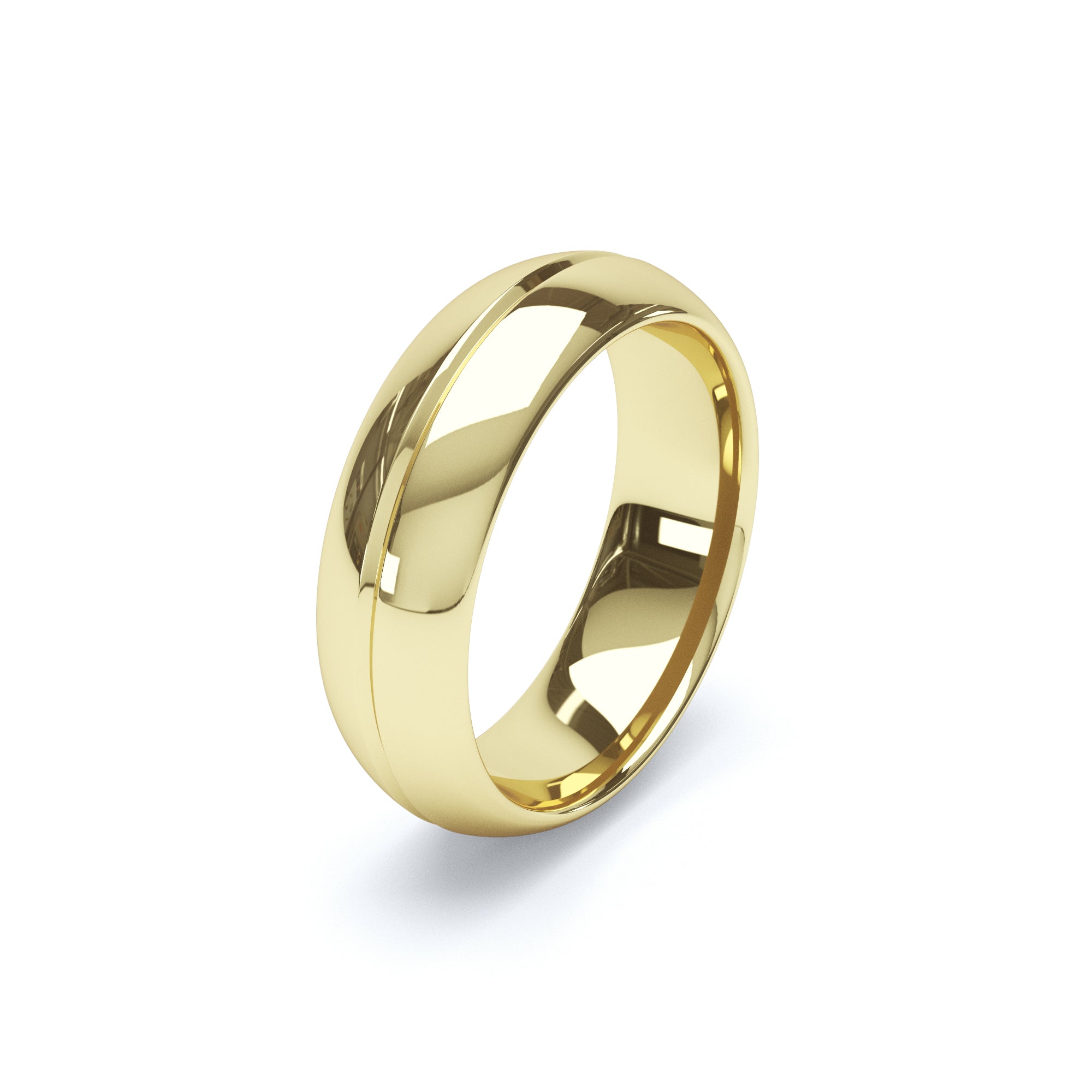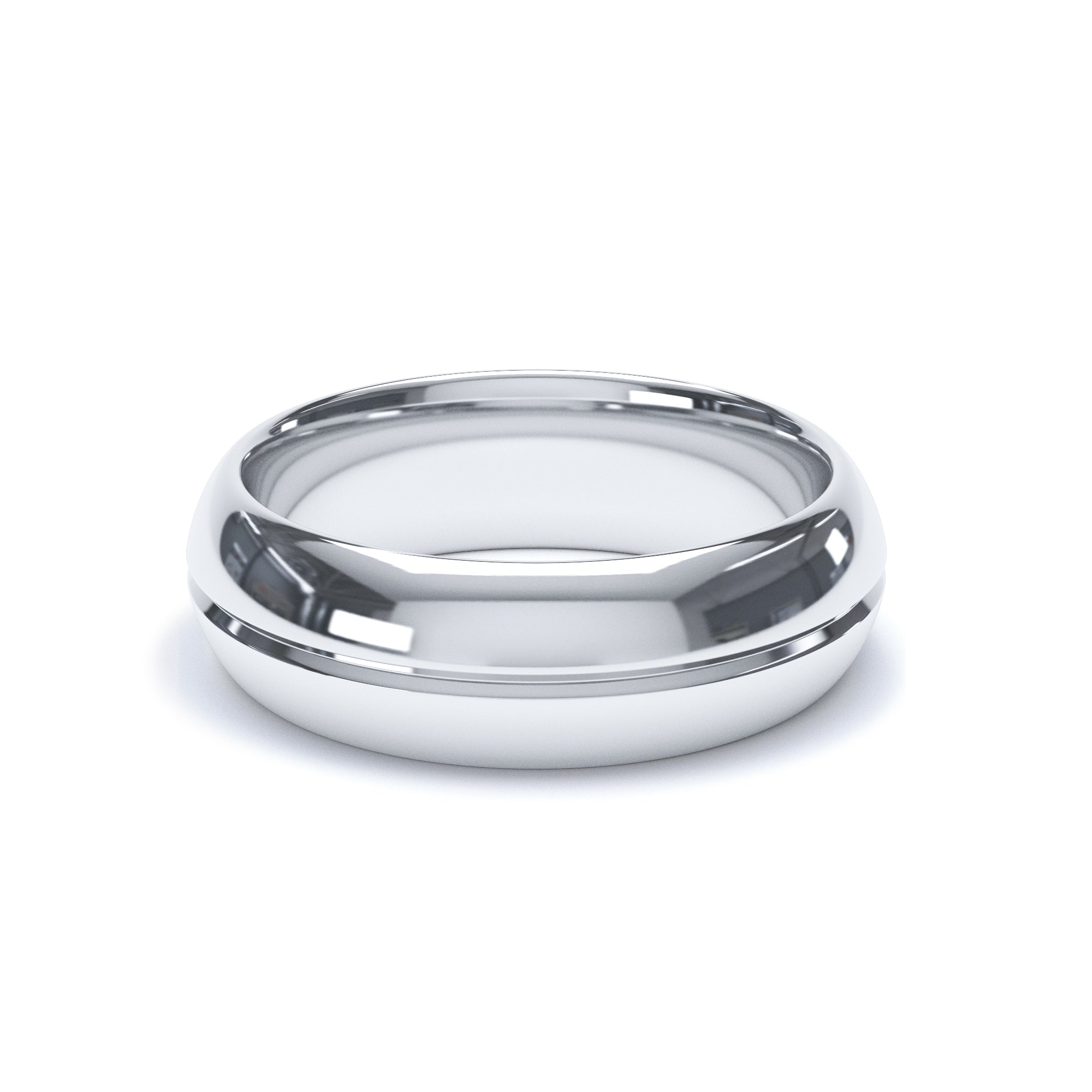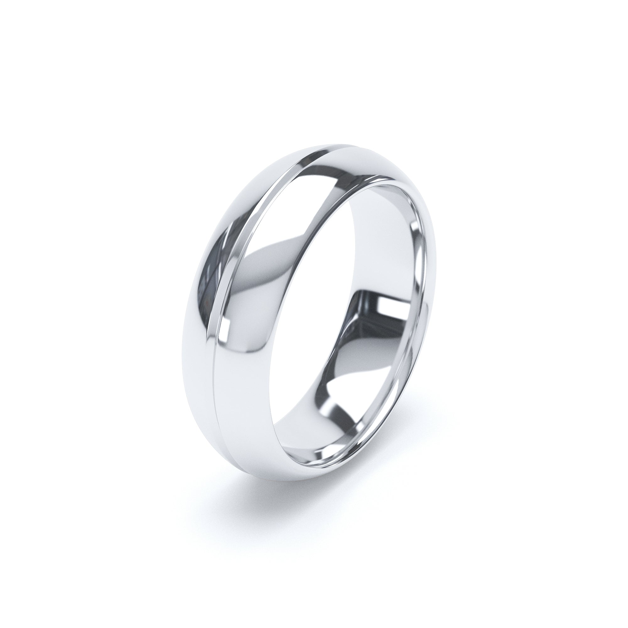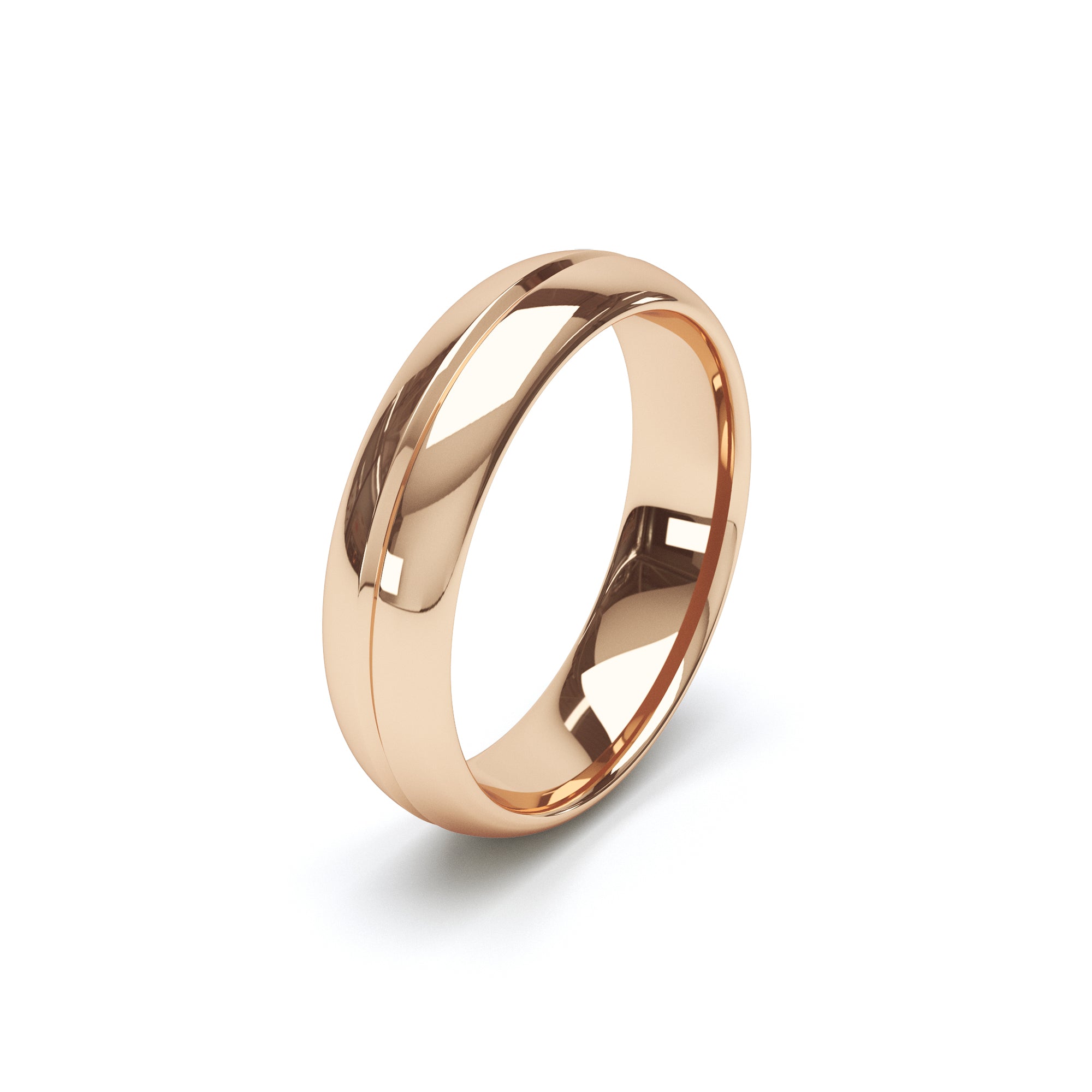 A luxurious Groove wedding ring. A take on our modern cushion court wedding band that is courted on both sides but with centre 'V' groove.