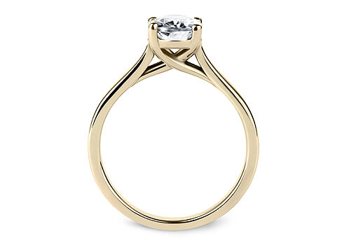 A gorgeous diamond solitaire ring. The diamond is set in a beautiful four claw crossover setting to match the flat profile band. A lovely alternative to the traditional four claw setting.