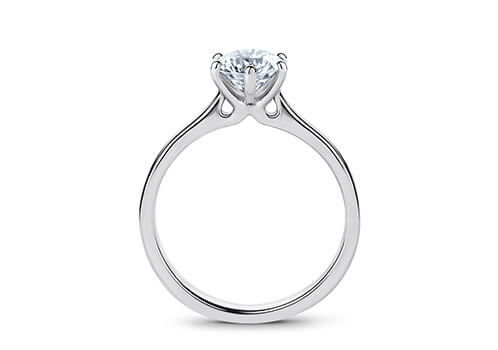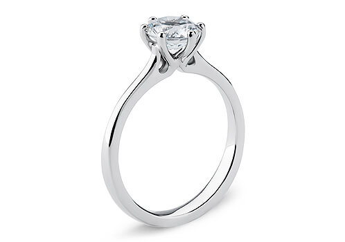 A very elegant engagement ring designed for a round brilliant cut diamond. The attractive six claw ring has a slightly elevated setting which tapers towards the diamond and a court shaped band which offers every day comfort.