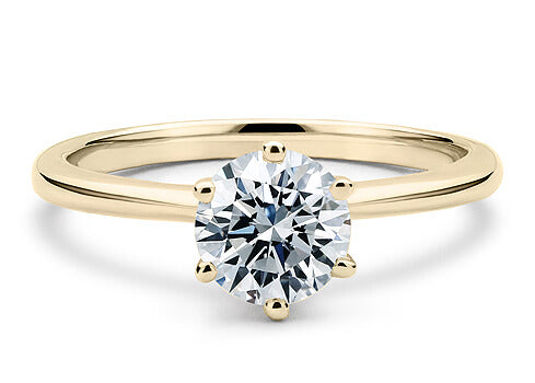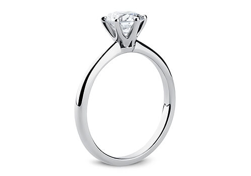 A stunning, striking design that matches a round brilliant cut diamond. With a six claw setting, the diamond is firmly held in place, while the ring profile is court shaped that ensures a comfortable fit.
