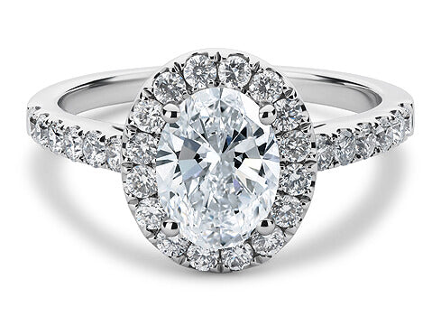A breathtaking halo diamond engagement ring presented on a gorgeous diamond shoulder set band to give that extra sparkle. The halo and shoulder diamonds in this beautiful ring are displayed in an elegant pave style setting.