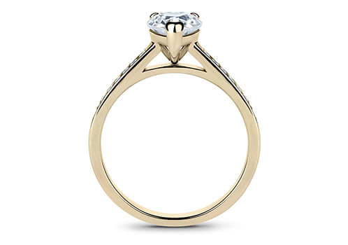 A gorgeous diamond engagement ring with a classic diamond set shoulder band. The diamond channel set shoulders gives this contemporary setting a modern twist.