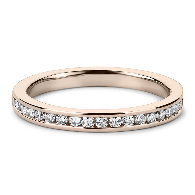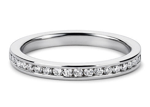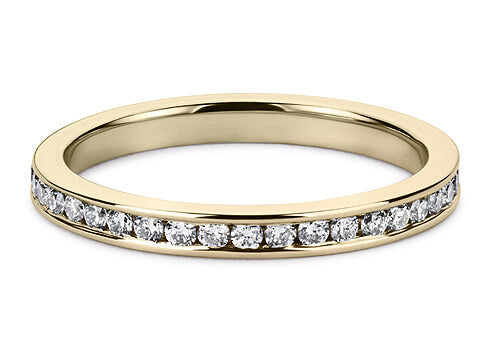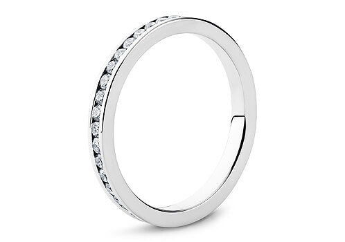 A luxurious channel set diamond eternity ring. A channel set band with round brilliant cut diamonds.