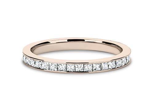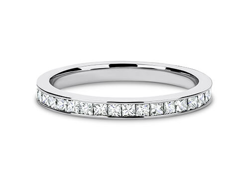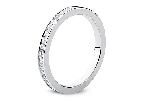 A classic channel set diamond eternity ring. A channel set band with stunning princess cut diamonds.