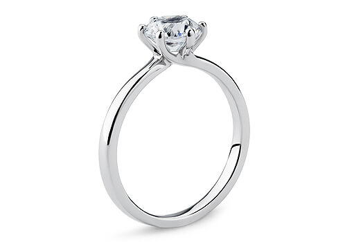 A classic ring with a modern twist. The round brilliant solitaire diamond in this gorgeous twist ring is held by six claws that flow elegantly and positon the diamond to maximise light.