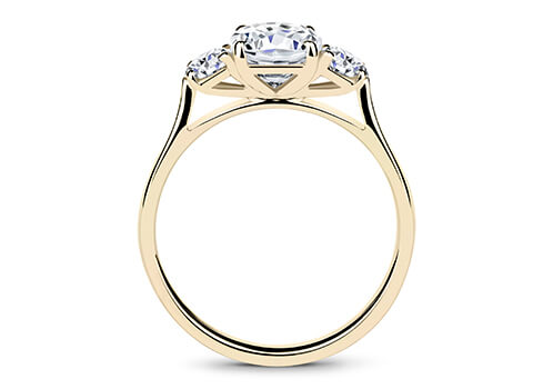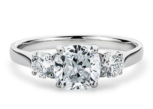 A beautiful trilogy ring that oozes in both class and sophistication. The centre diamond is accompanied by two round cut diamonds. Set in tapered ring band with open daylight shoulders allows this trilogy ring to sparkle to its full potential.
