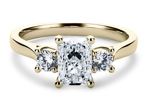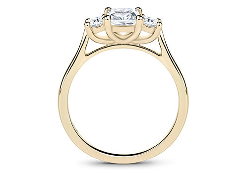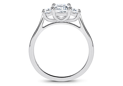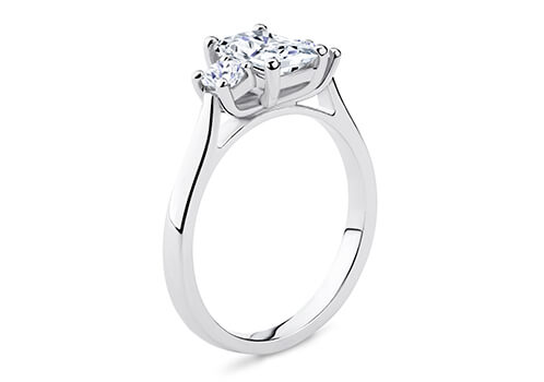 A beautiful trilogy ring that oozes in both class and sophistication. The centre diamond is accompanied by two round cut diamonds. Set in tapered ring band with open daylight shoulders allows this trilogy ring to sparkle to its full potential.