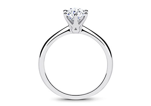 A stunning, striking design that matches a round brilliant cut diamond. With a six claw setting, the diamond is firmly held in place, while the ring profile is court shaped that ensures a comfortable fit.