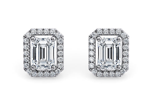 Emerald Diamond Stud Earrings in White Gold