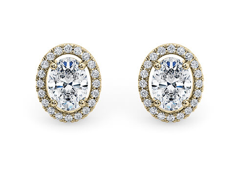 Oval Diamond Stud Earrings in Yellow Gold
